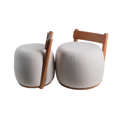 Estrutura estofada com base e encosto em madeira maciça. Disponível nos tamanhos P, M e G.